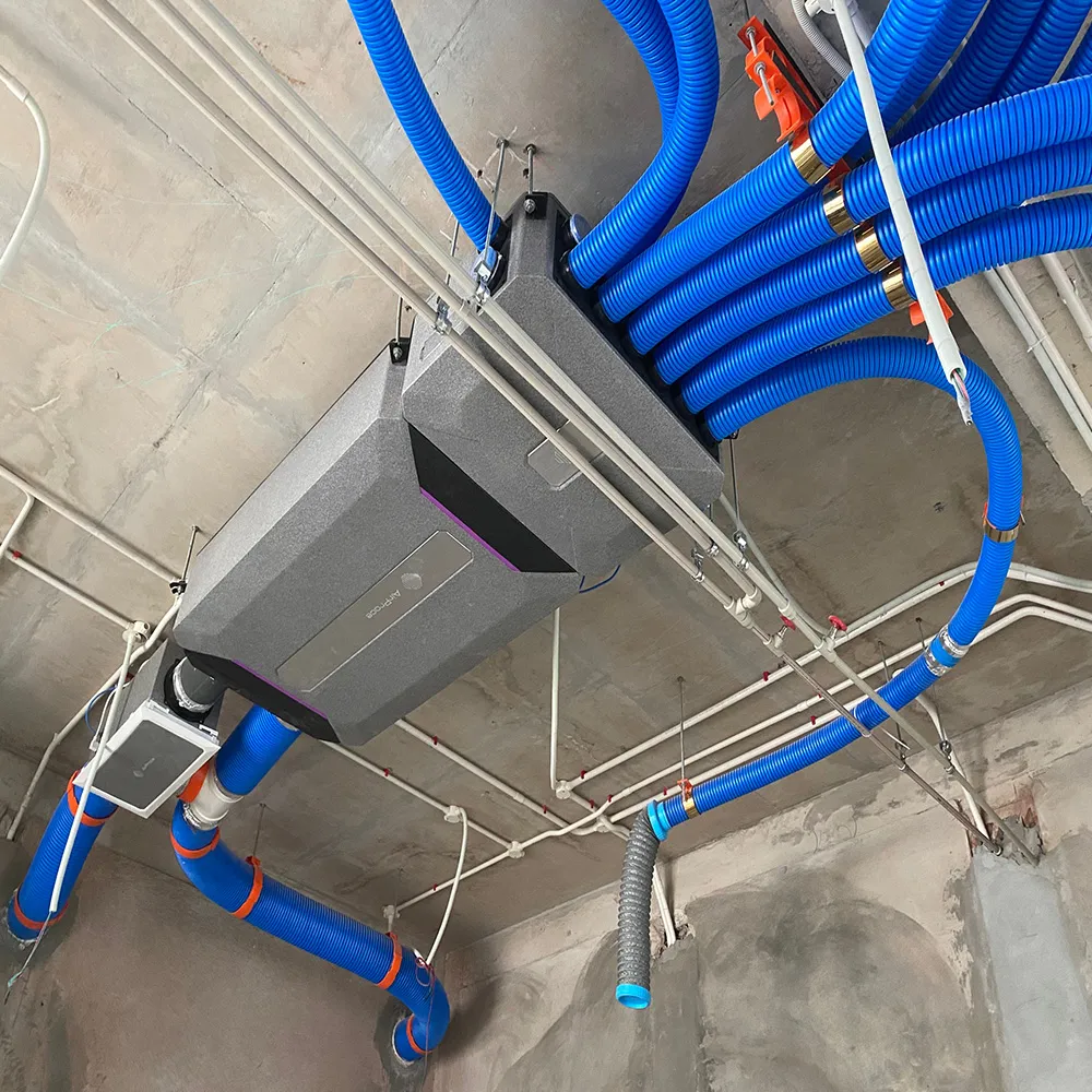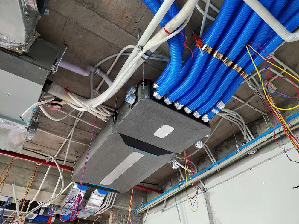 Bước 3: Lắp đặt hệ thống ống gió chính và ống gió nhánh trong không gian trần giả hoặc các hộp kỹ thuật. Lắp đặt các miệng gió cấp (khí tươi vào phòng) và miệng gió hồi (khí bẩn từ phòng ra).